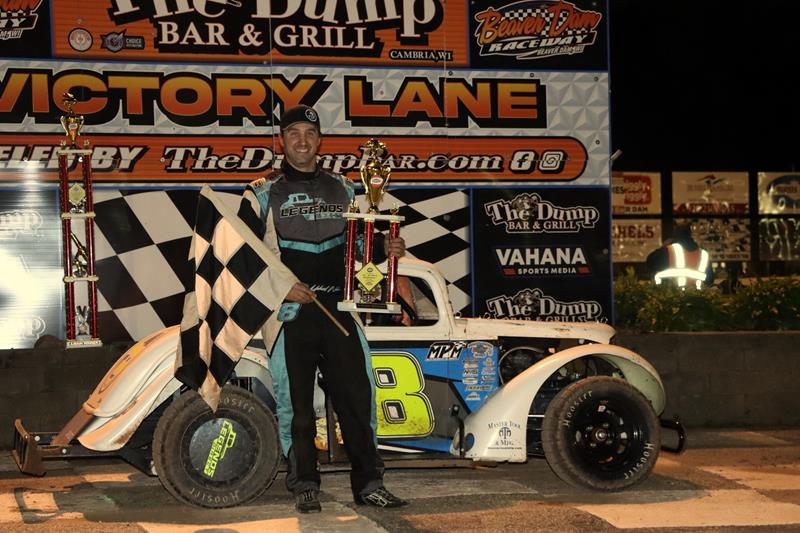 Beaver Dam, Wisconsin (June 8th, 2025) - Fireworks on track led to celebration out back for Michael Weber as he snuck into victory lane at Beaver Dam Raceway with the Midwest Legends Dirt Series. The first win of the season in the MLDS for Weber was a sweet one on one of the biggest stages of them all.